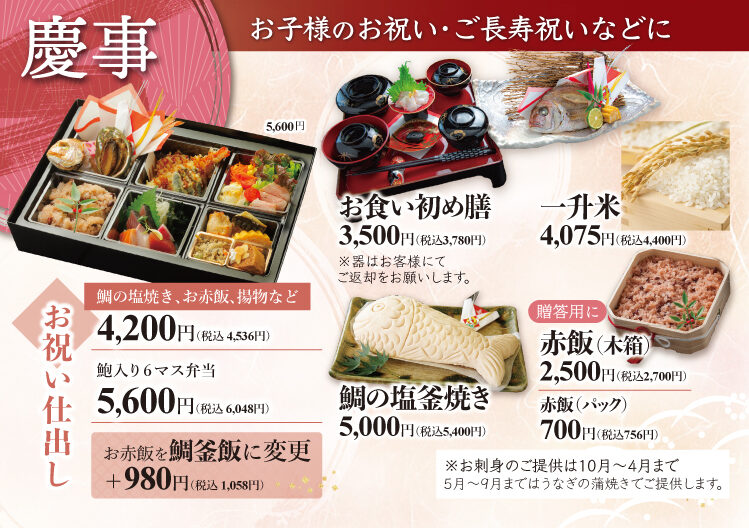 仕出し料理(お届け料理)も承っております。