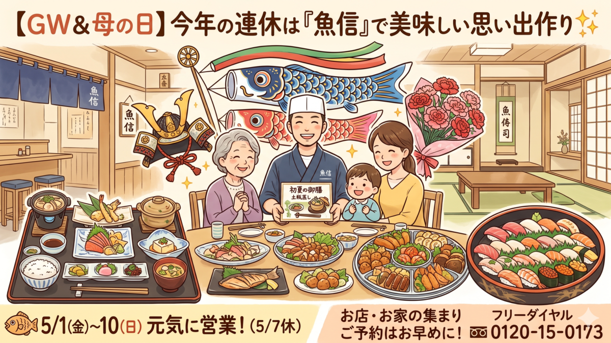 ご家族で集まる機会の多いこの連休。そして、お母様へ日頃の感謝を伝える大切な日に向けて、魚信から【5月1日スタート】のとっておきのお知らせです。