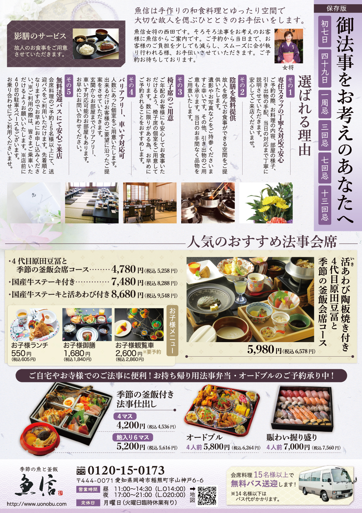 面倒な食事の段取りは魚信にまるっとお任せいただいて、ぜひご家族の大切な時間に集中してくださいね。