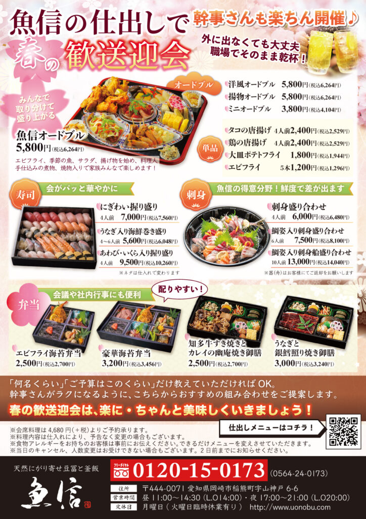 【予告】3/1スタート!岡崎市の歓送迎会は魚信の「飲み放題付き宴会プラン」で決まり🌸