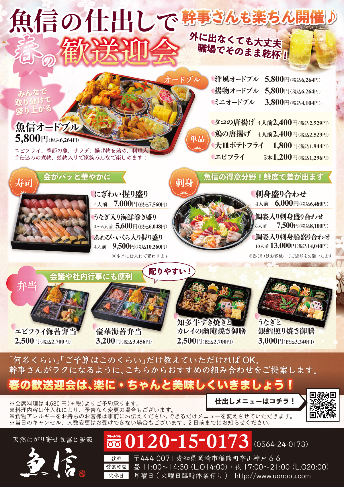 歓迎会・送別会・部署の打ち上げなど、春の宴会シーズンにぴったりの内容です。