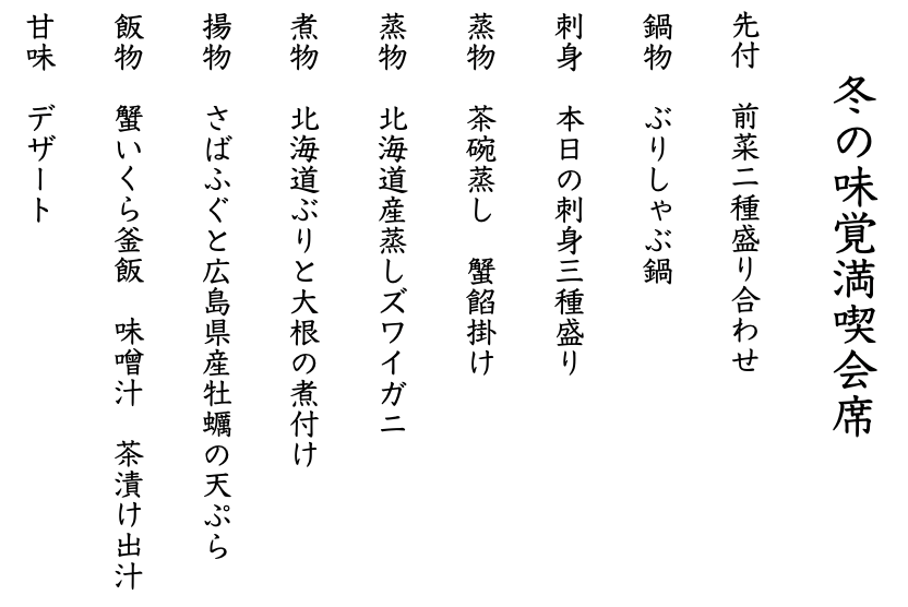 ▶ 冬の味覚満喫会席 詳しくはこちら