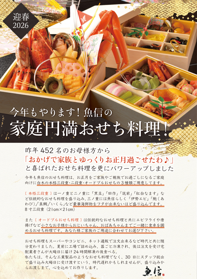 🍱✨【魚信のおせち2026】ご予約スタート✨🍱