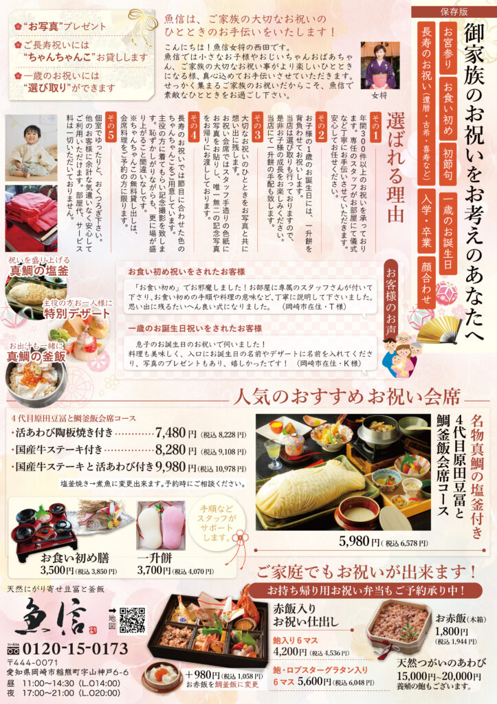 ご家族の「おめでとう」を、魚信の料理でお祝いしませんか?