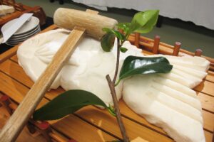塩で包まれた真鯛を、木槌で“パカン”と叩いて開く演出はまるで鏡開きのよう。