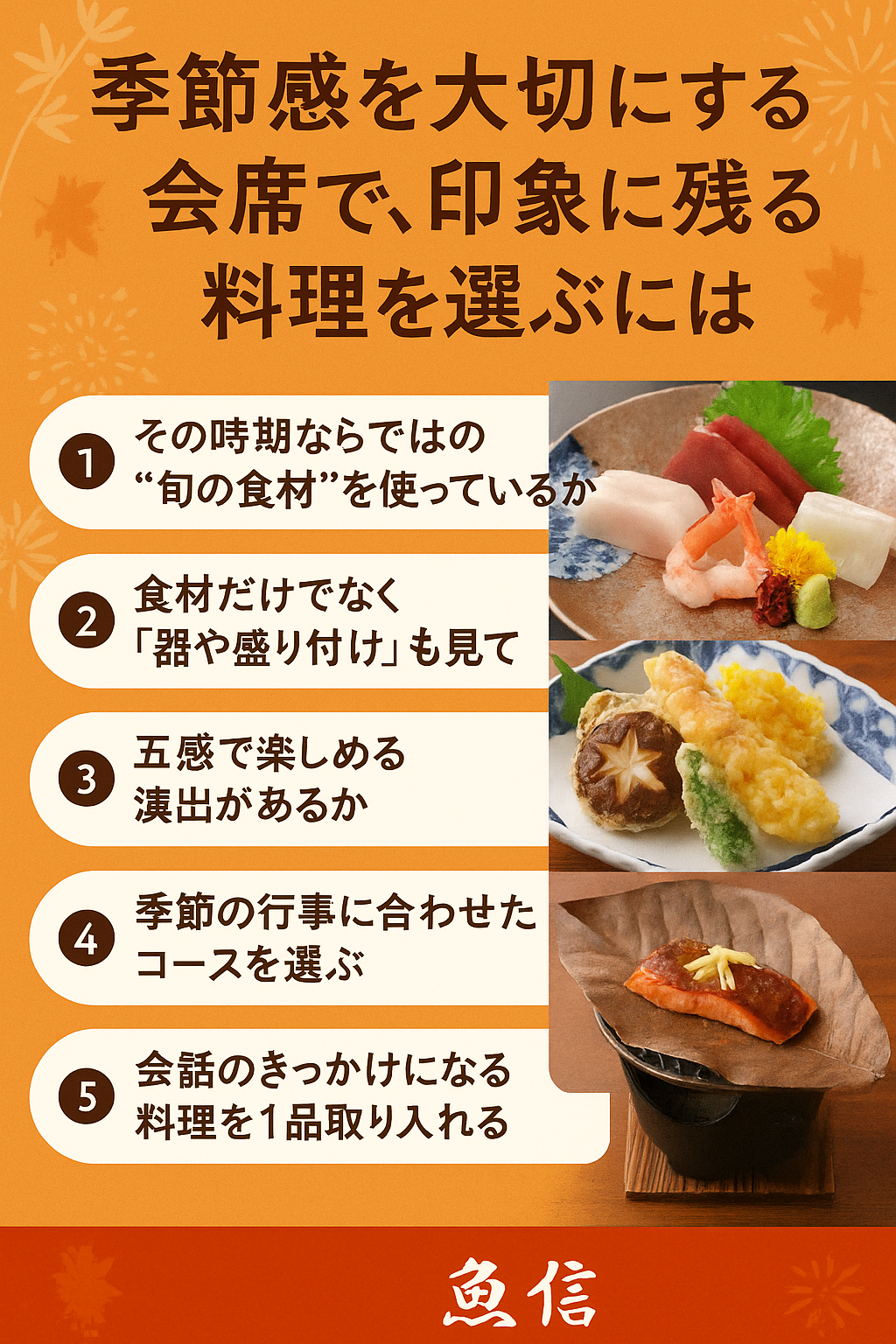 季節感を大切にする会席で、印象に残る料理を選ぶには