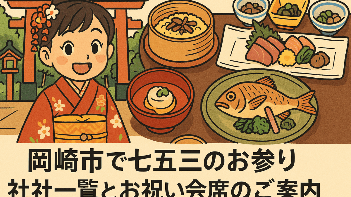 七五三は、お子さまの健やかな成長を神さまに感謝し、これからのご加護を祈る大切な行事です。岡崎市内にも、七五三詣におすすめの神社が数多くあります。この記事では、岡崎市で七五三のお参りができる神社と、参拝後におすすめのお食事処「魚信(うおのぶ)」のお祝い会席をご紹介いたします。