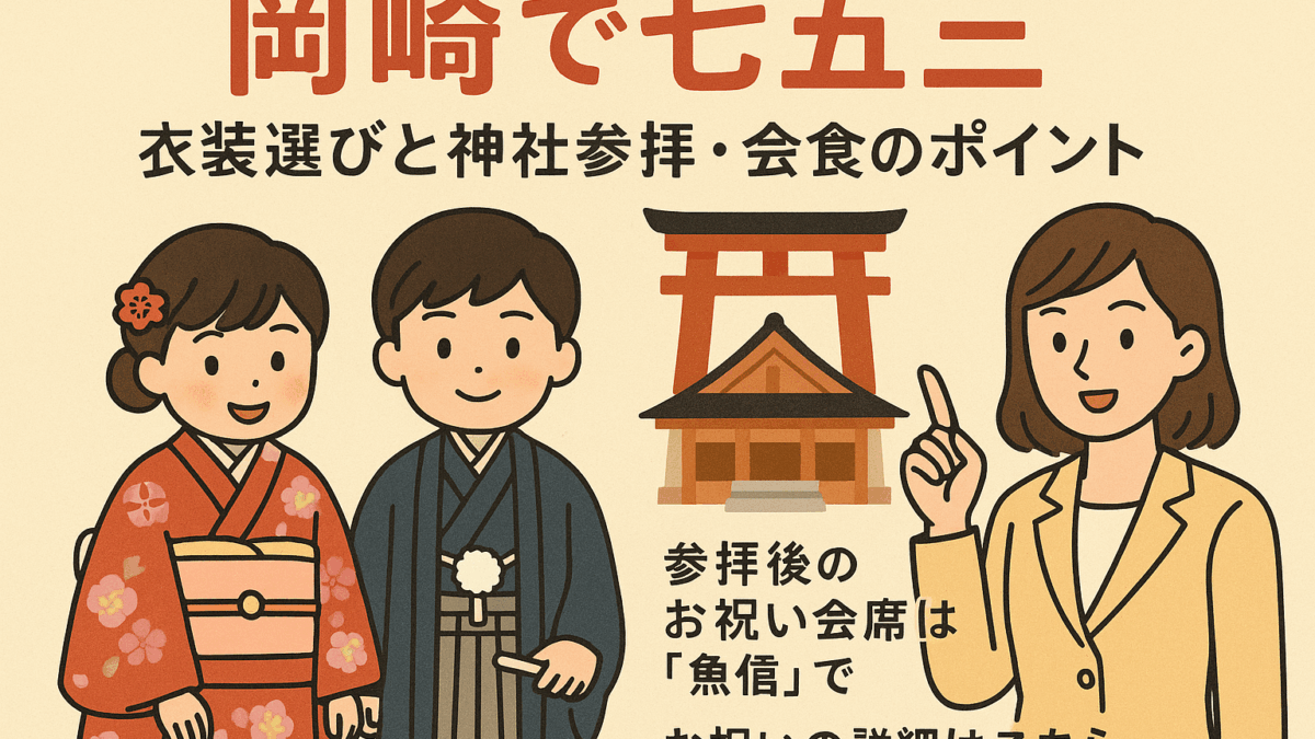 七五三は一生に一度の大切な節目。写真に残るからこそ「衣装選び」は失敗したくないポイントです。ここでは岡崎市で七五三を行うご家族に向けて、衣装選びのコツや失敗しやすい点、祖父母の服装マナー、神社参拝と会食の流れをご紹介します。