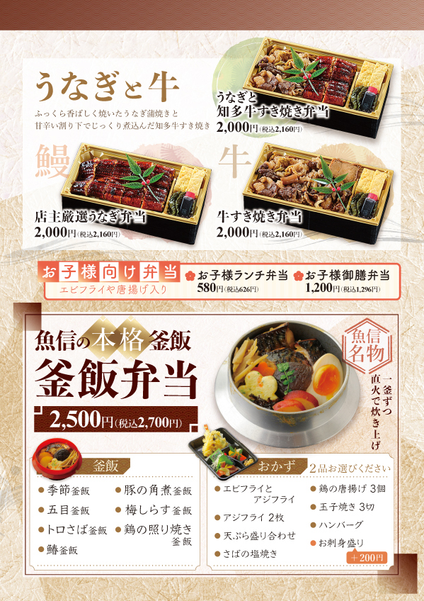岡崎市で仕出し料理をお探しなら、創業57年の和食店「魚信(うおのぶ)」にお任せください。