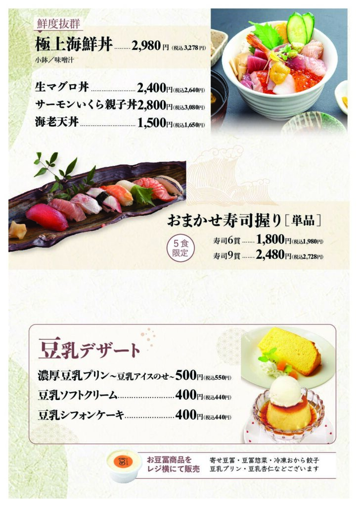 魚信は 「魚×豆腐×釜飯」 を中心に、免疫力を高め、健康を支援できる料理 を提供しています!