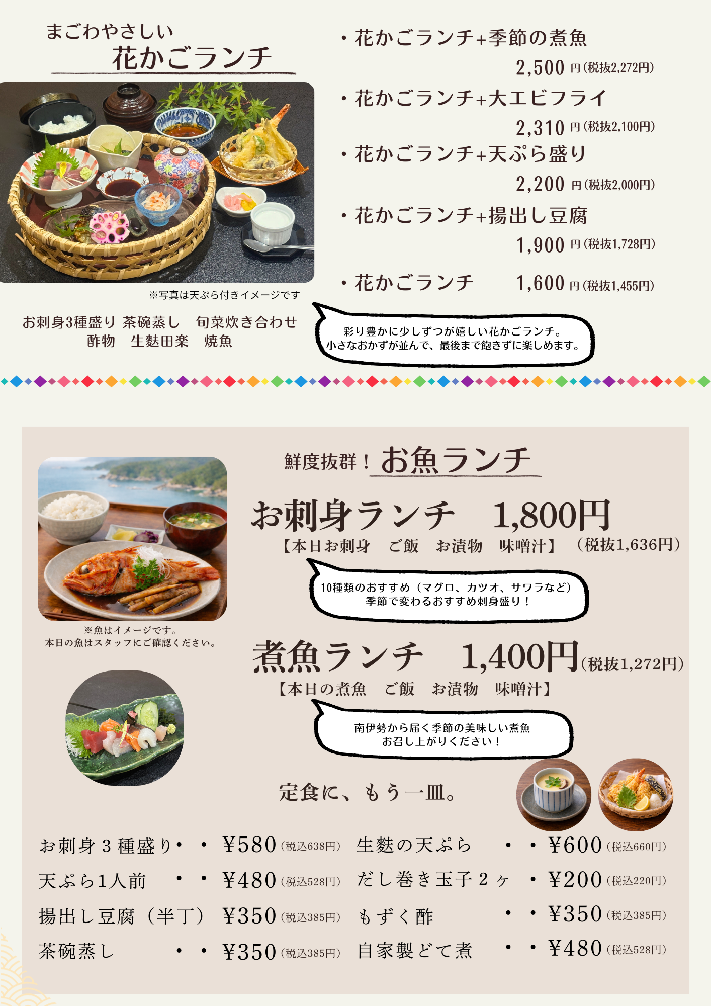 師崎・南伊勢の新鮮な近海魚介 と 地元の野菜 を中心に、