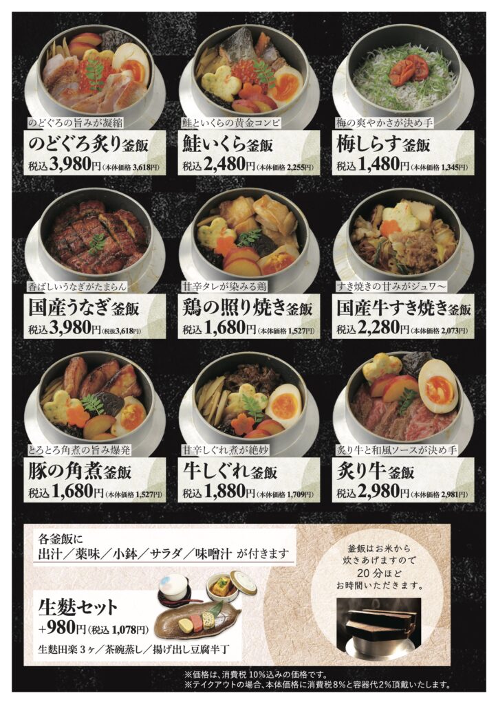 釜飯メニュー